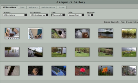We finally review the gallery of an author by the nickname of “-tempus-.” This author obviously enjoys dabbling in photography as we can plainly tell by his gallery. The simplicity in the gallery layout makes finding a photo of choice relatively fast and easy -- unless, of course, the author has not taken photographs of the reader’s own tastes. However, the general purpose of the many uses of DeviantART becomes quite obvious. Its extensive collection of eLiterature and art can satisfy nearly any taste, and the sheer wealth of literary qualities also found in conventional literature as well as those exclusive to eLiterature can give even the novice eReader a good sense of what eLiterature is. As we end our tour through eLiterature, we have learned that eLiterature can be a variety of different writing or artistic styles and that no one will go unhappy in the world of eLiterature. |